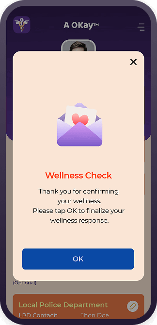 A OKay is on a mission to keep you, your loved ones and your beloved pets safe and well cared for in the event of an unforeseen emergency. We provide personalized wellness/safety check-ins for users and Emergency Contact notifications in the absence of a response.